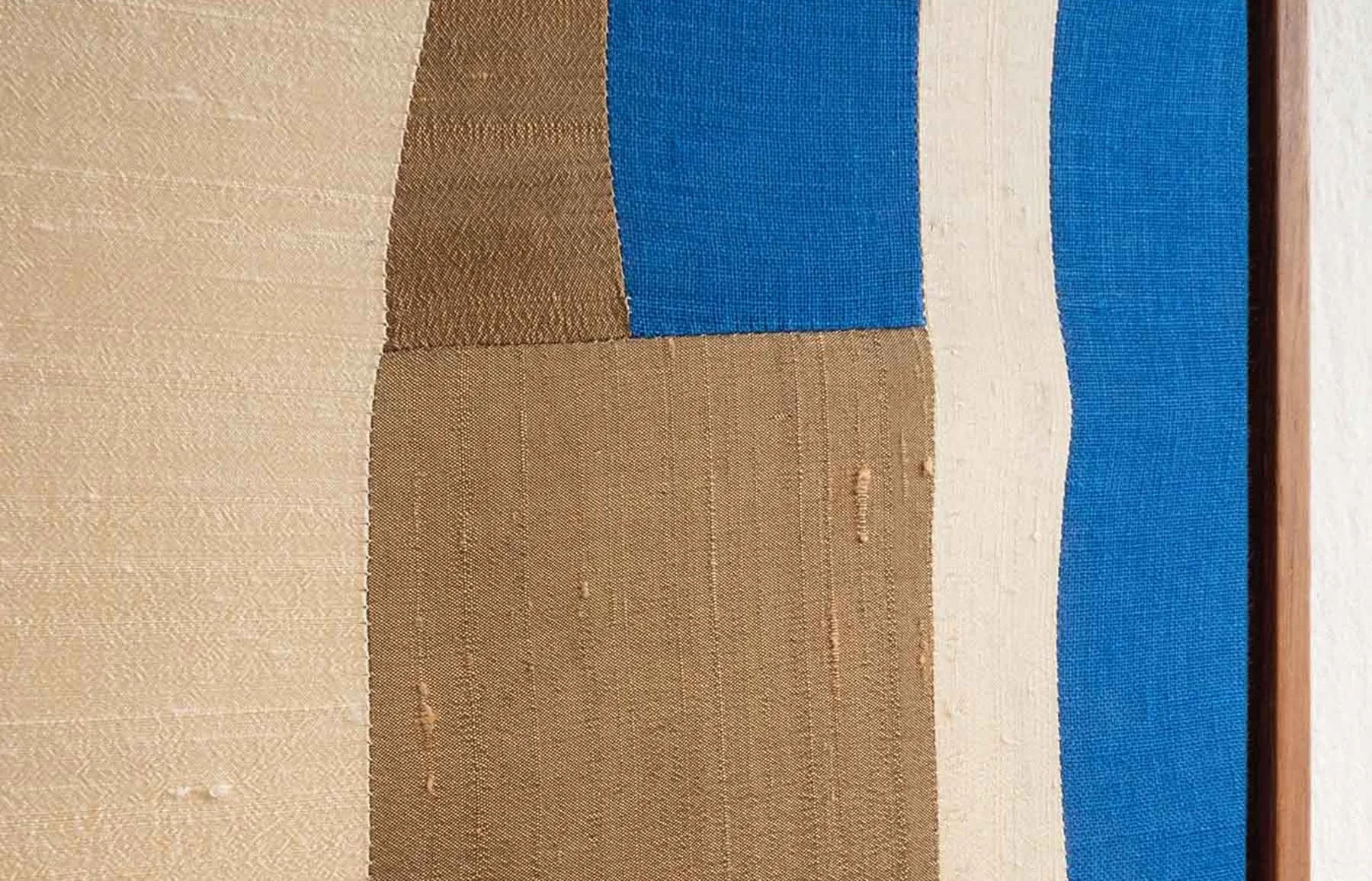 Parachute is a series of hand-pieced textile works created from vintage and discarded fabrics. Each fragment is approached intuitively, allowing material qualities—texture, weight, colour, and history—to guide their placement. As the pieces are joined, relationships emerge, sometimes subtle, sometimes unexpected, shifting energy and establishing balance across the composition. Through this process, cohesion arises from difference, and tension resolves into harmony. The works are meditations on touch, material memory, and the transformative possibilities embedded in both fibre and making, inviting viewers to reconsider how fragments, remnants, and overlooked materials can hold meaning, presence, and beauty.
